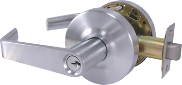- Deadlocking latchbolt operated by key In outside lever or rotating inside lever. Outside lever is always locked.